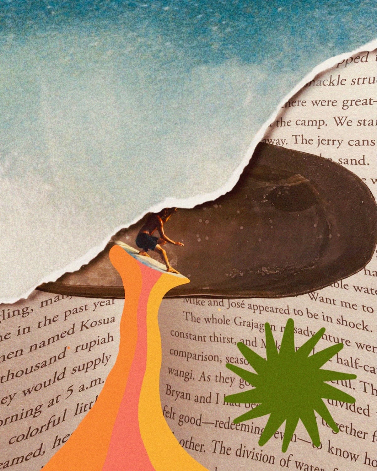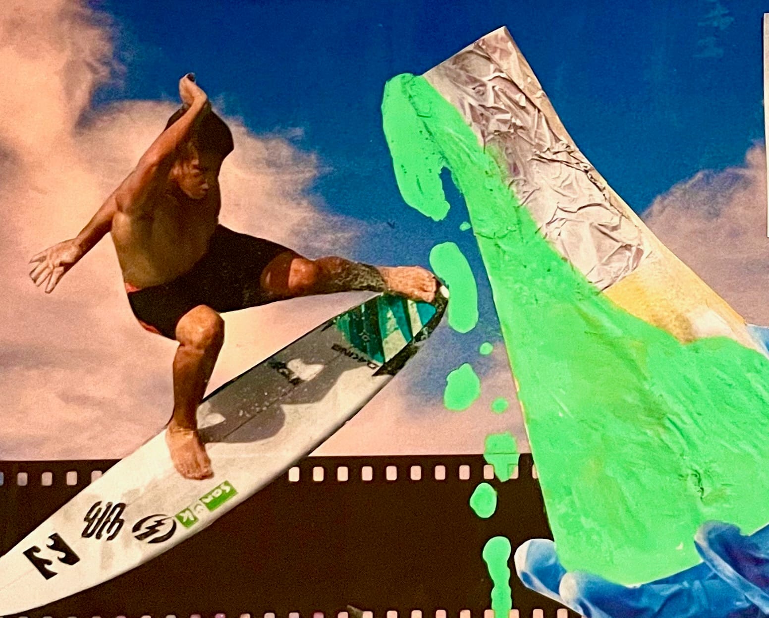 How can I allow the viewer to connect with this piece in a different way instead of just looking at somebody on a wave what if I like put them in the sky or newspaper or something like that.
