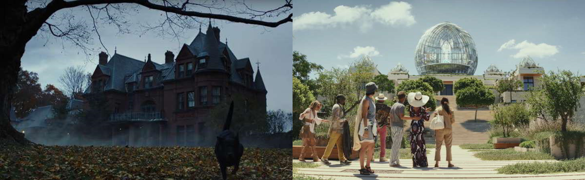 There’s much that is textually similar about the first two of Rian Johnson and Daniel Craig’s Benoit Blanc mysteries: Knives Out and Glass Onion. Both films satirize rich people, where in contrast to the typical whodunnit trope of having ambitious underlings be the murderers, guilt ends up squarely on the richest, most privileged characters. The central murders in each film are both explicitly characterized as an attempt by the wealthy to keep total control over their oligarchic power. Yet for two films both about the injustice of wealth inequality, the visual styles they use to depict that wealth could not be more different.