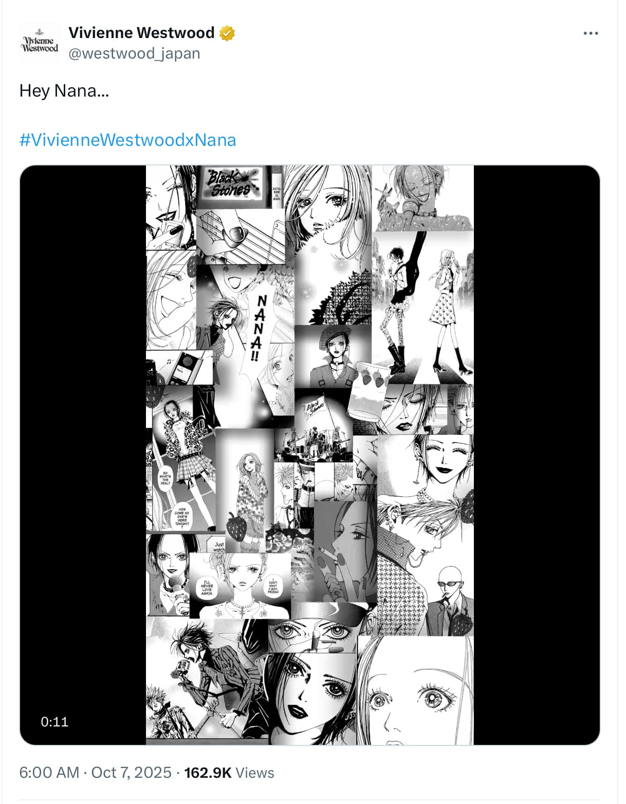 On October 7, 2025, Vivienne Westwood (@westwoof_japan) posted a short teaser on X, confirming its official partnership with NANA. As if guided by fate, the two have finally united.